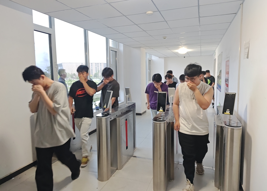 5月29日上午10:00,,实训室日间消防演练有序开展。。本次消防演练由石职软件工程系教学部王磊主任、、、、学工部刘克青主任到场指导及全体师生参加。。。。演练模拟实训室突发火情,,师生们规范做好防护措施,,,,快速通过安全出口疏散至指定区域。。。。整个疏散过程紧张有序,,,充分展现了软件工程系师生的良好的应急反应能力和组织纪律性,,有效提升了师生们的安全意识和实战能力。。