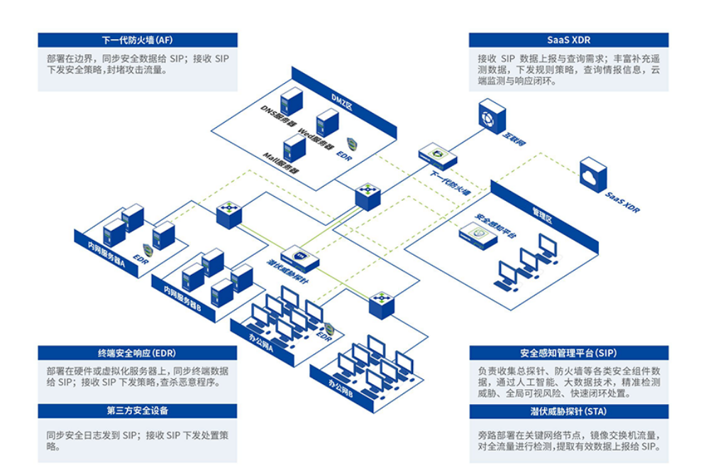安全感知平台(SIP)定位为客户的安全大脑,,,是一个检测、、、、预警、、、、响应处置的大数据安全分析平台。。其以全流量分析为核心,,,,结合威胁情报、、、行为分析建模、、、、UEBA、、失陷主机检测、、、、图关联分析、、机器学习、、、、大数据关联分析、、、、可视化等技术,,,对全网流量实现全网业务可视化、、、威胁可视化、、、、攻击与可疑流量可视化等,,帮助客户在高级威胁入侵之后,,,损失发生之前及时发现威胁。。。。